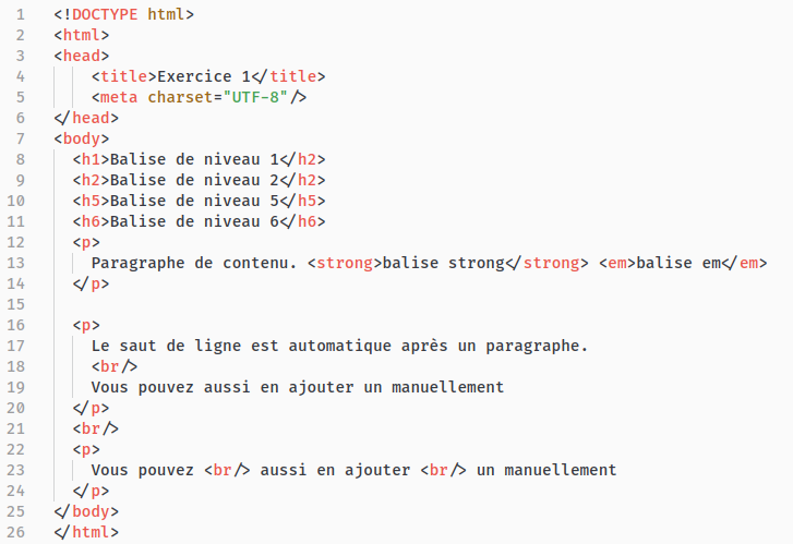 Prenez le temps de bien comprendre l'effet de chaque balise.